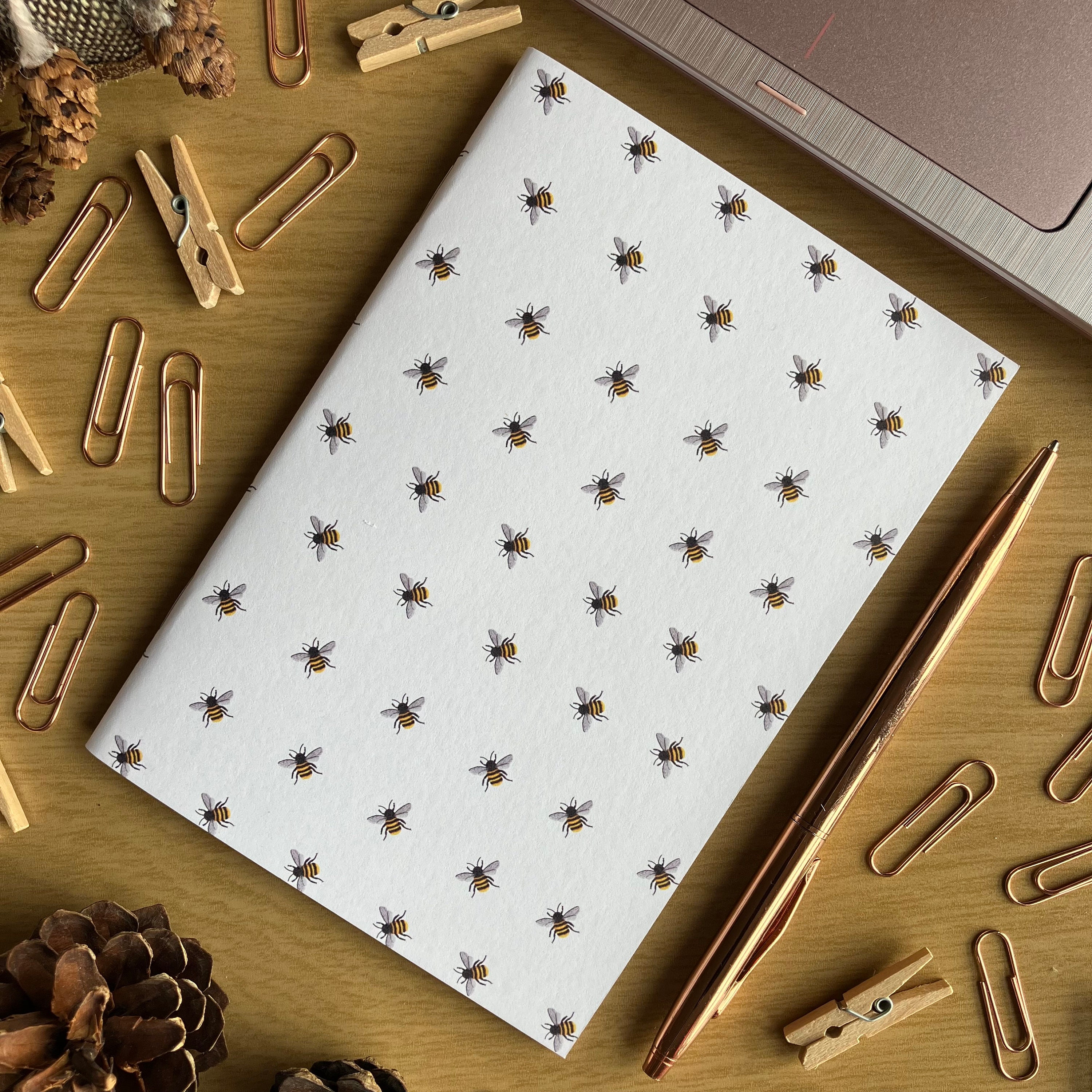 Are you looking for a stylish and functional notebook that is perfect for taking with you on the go? Look no further than our A6 sized bee pattern notebook! This notebook is made from recycled card and paper stock and features a beautiful bee patterned cover. It's perfect for keeping your notes, to do list and plans organised and easily accessible. Not to mention, it makes a great desk notebook or pocket journal!