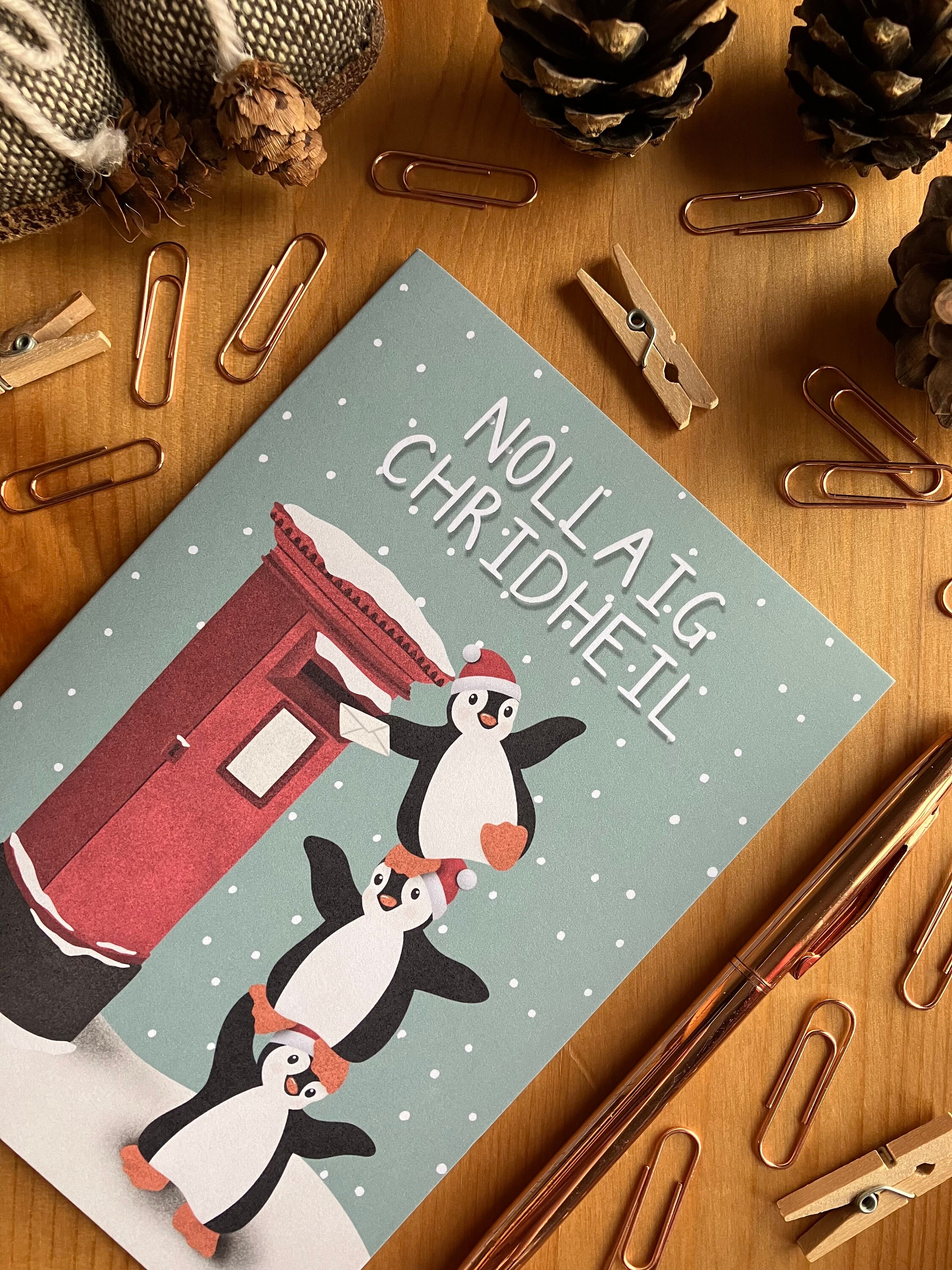 Nollaig Chridheil Scottish Gaelic A6 Size Green Christmas Penguin Post Christmas Card, Scottish Christmas Card, Recycled Card, SH Designs