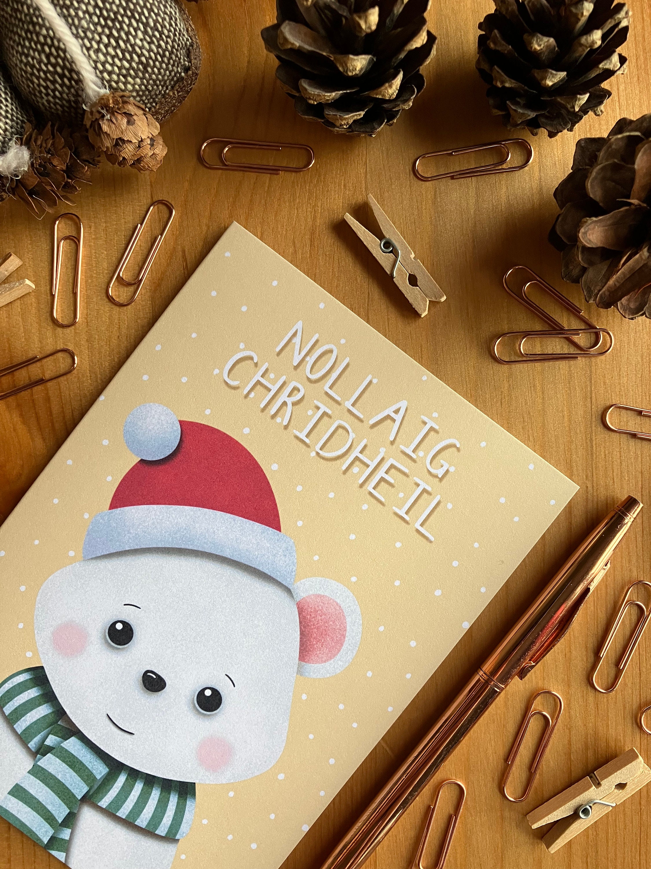 Nollaig Chridheil Scottish Gaelic A6 Size Yellow Christmas Polar Bear Christmas Card, Scottish Christmas Card, Recycled Card, SH Designs