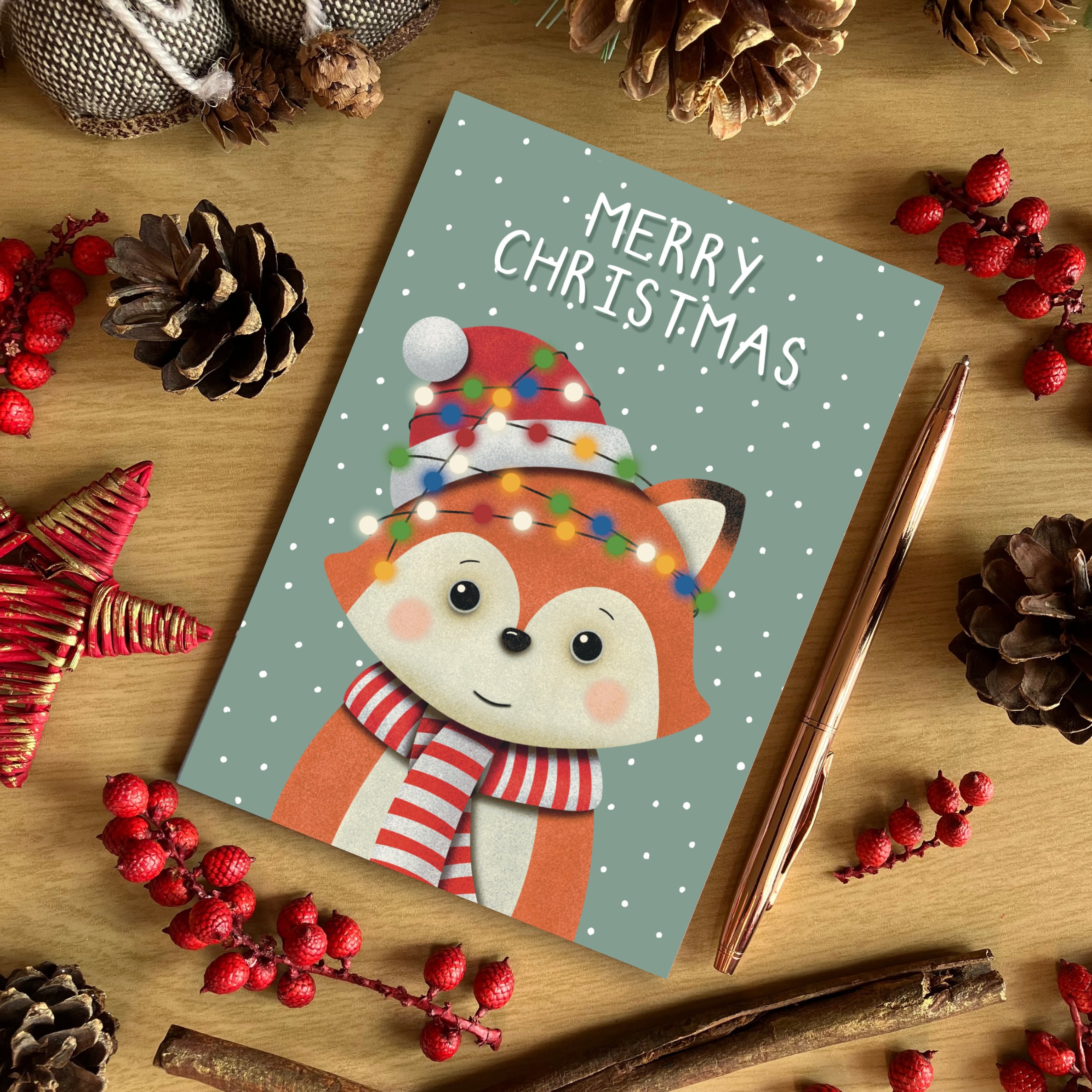 A6 Green Christmas Festive Fox Christmas Card, Merry Christmas Card, Cute Fox Illustration Christmas Card, Recycled Card, SH Designs